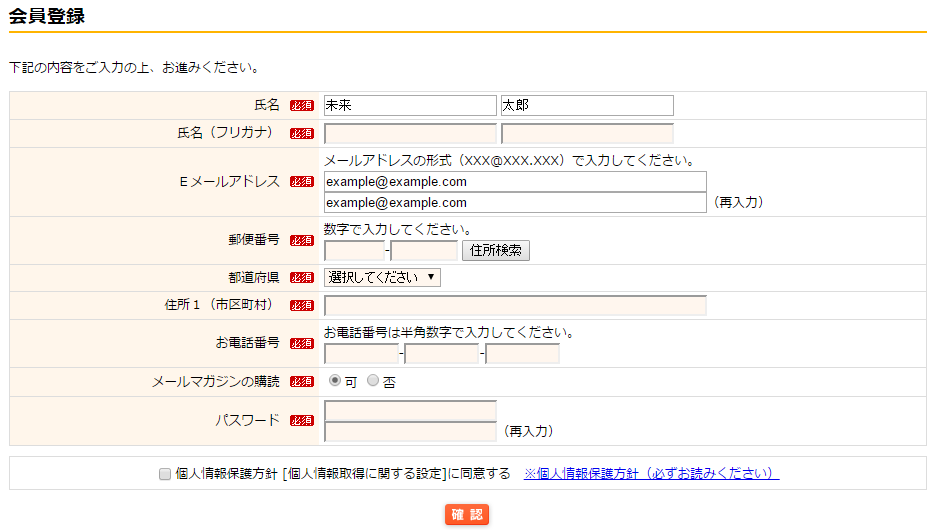 Amazonアカウントの情報を利用して、会員登録を行います。入力されていない項目を登録してください。