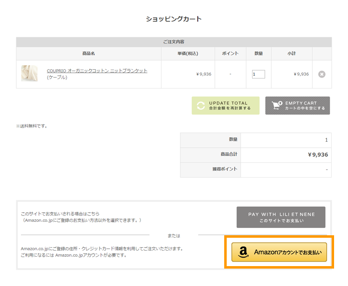 - 初めてリリエネネのショッピングをご利用される方(すでに会員の方もポイントや登録情報はそのままでamazonペイをご利用いただけます!)