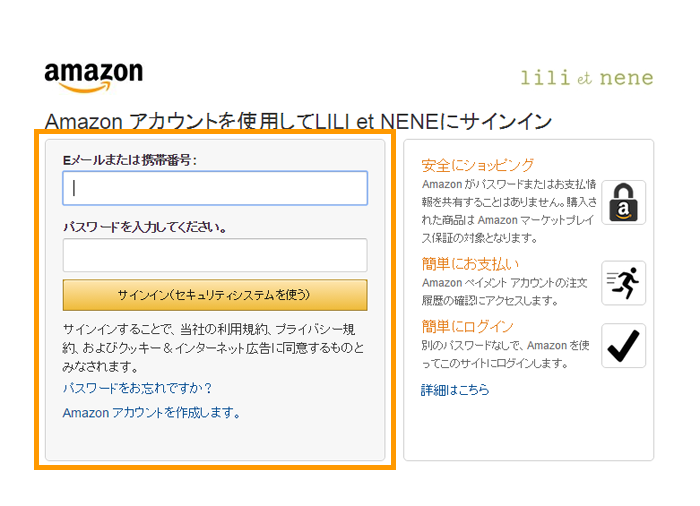 AmazonのIDを使ってリリエネネで簡単にお支払が出来ます!