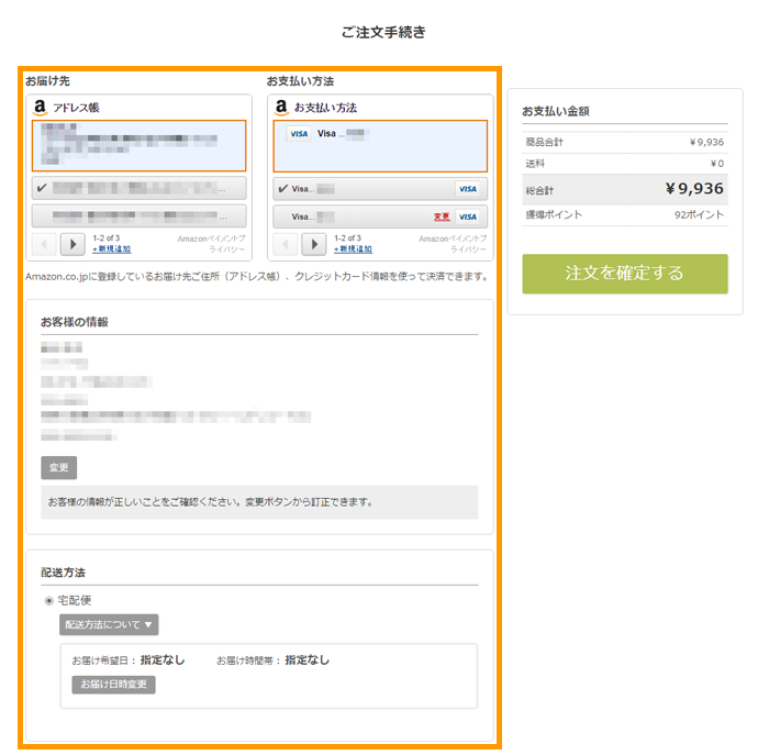 STEP3Amazon.co.jpにご登録の情報からお届け先・お支払い・配送方法を手続きをして注文完了! |