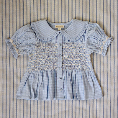 BONJOUR 2024SS KIDS HANDSMOCK BLOUSE Light blue organic check voile 4A-6A