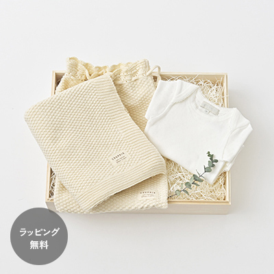 コットンニットブランケットとアイレット半袖ボディ(ホワイト)セット