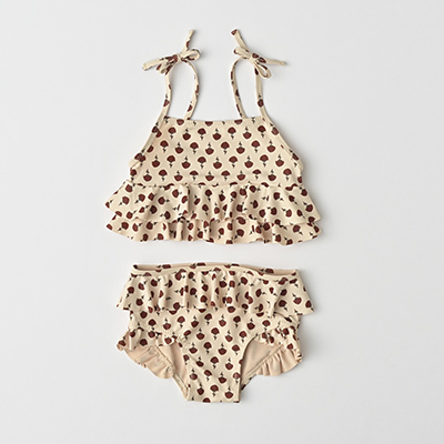 KONGES SLOEJD キッズ フラワーフリルビキニ/水着(POPPY FLOWER-RED ベージュ/レッド)2A-6A
