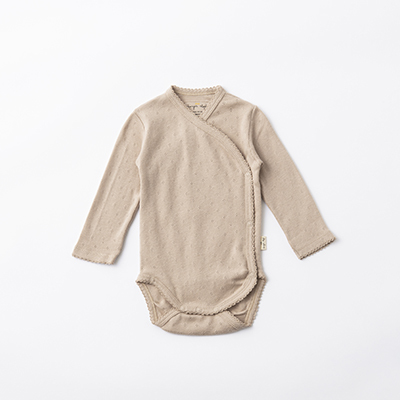 KONGES SLOEJD ベビー ピコレース付き長袖ロンパース(ROSE GRAY ローズグレー)3M-9M