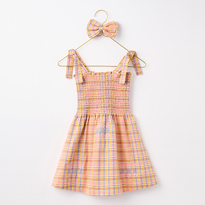 BONJOUR 2023SS KIDS Long skirt dress(Rainbow check )8A