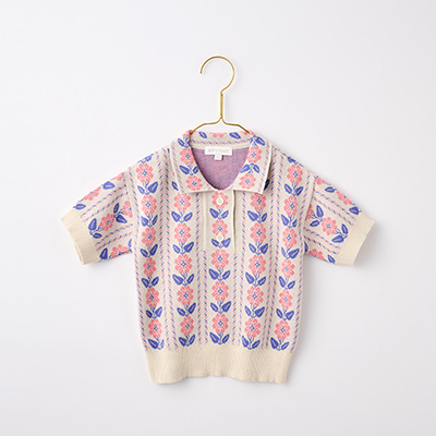 BONJOUR 2023SS KIDS knitted polojacquard flowers(blue pink )8A