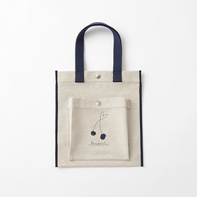 ・2022年フォールコレクションのトートバッグ。 ・手描き風のチェリーモチーフとBONPOINTのネームをプリントした、大きなパッチポケット。 ・メインの開口部とポケットはスナップボタン留め。 ・丈夫なキャンバス生地。