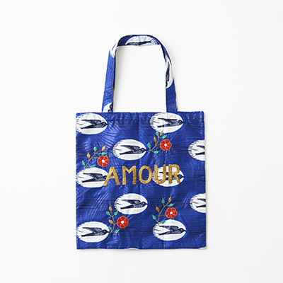 ・ブルー地にたっぷりのハート柄をあしらったキュートなデザイン。・デイリー使いはもちろん、コンパクトにたためるのでサブバッグとしても活躍。・生地が厚く型崩れしにくいので、本や楽譜を入れやすくレッスンバッグにもおすすめ。・ハンドルは肩にかけやすい長さで、使い勝手抜群。※生地の裁断により、一点一点パターン(柄)の出方が画像と異なります。予めご了承ください。 ※自立はしません。