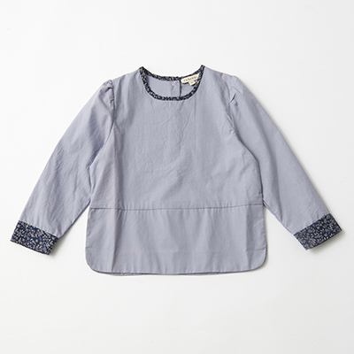 ・エレガントなルックスと楽な着心地を叶えるキッズブラウス。・キャンブリック加工で上品な艶感を持たせたコットン100%。・ネックラインと袖口はフラワープリント生地を使用。・背中側にスナップボタン4個。・裾はインでもアウトでもさまになるラウンドテール。