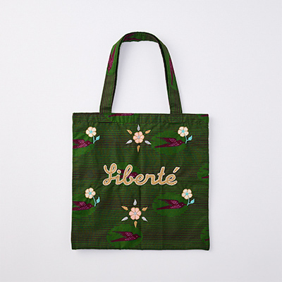 ・フランスのフェアトレードブランド「CSAO(サオ)」のメッセージ入りビッグトートバッグ。・アフリカの女性刺繍師によるフランス語の「Liberte(自由)」と草花の刺繍入り。・厚手のコットン素材。・たっぷりと荷物が入る約14cmのマチ幅で、ショッピングやビーチ、トラベルバッグにもおすすめ。・バッグ内側にファスナー付きポケット1個、オープンタイプのポケット。