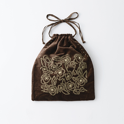 KHADI & CO ベロア刺繍バッグ(カメリア)(brown ブラウン)