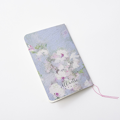 パウダリーな色合いが優しい印象の「クラウド」という名のミニノートです。表紙には凹凸のあるエンボスペーパーを使用しており、まるで本物の絵画に触れているような手ざわり。携帯に便利な手のひらサイズです。