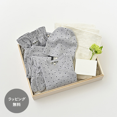 セット内容 ・BONTON ベビー ハート柄アンサンブル帽子/4点セット(グレー)6Mサイズ ・BONTON ベビーコットンニットブランケット(ホワイト)one size ドットのようにあしらった小さなハート柄がかわいいアンサンブルと、織り加工でBONTONのロゴをデザインしたコットンニットブランケットのギフトセットです。キャップ・前合わせトップス・足付きボトムスのアンサンブルはスムースな肌ざわりが心地良く、抜群の伸縮性でベビーの動きにフィットして快適。収納に便利な同柄のバッグも付いています。アフターユースできるギフト用木箱に入れてお届けします。 ・メッセージカードの印字、持ち運び用の紙の手提げ袋のサービスもございます。(※ご注文時の通信欄に、メッセージの印字内容、紙袋ご希望、とご記入ください)*ギフトボックスの中にグリーンは入りません。グリーンは外側に添えるのみになります。外側のグリーンがご不要の場合は、通信欄に「グリーン不要」とご記入ください。