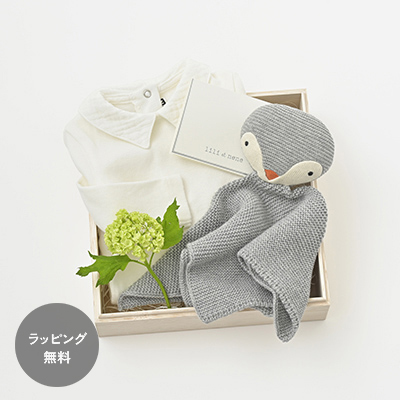 セット内容 ・BONTON ベビー襟付きロンパース(ホワイト)6Mサイズ ・BONTON ベビーペンギンドゥドゥ(グレー)one size きちんと感を演出する襟付きロンパースと、愛らしいペンギンモチーフのドゥドゥのセット。ロンパースは襟がベビーのデリケートな肌にも優しいガーゼ素材、身頃はサラッとしたカットソー素材でリラックスした着心地です。ドゥドゥは柔らかなコットンで、ベビーがギュッと握りやすいフォルム。贈り物やお祝いにふさわしい、特別感あふれる木箱にお入れしてお届けします。 ・メッセージカードの印字、持ち運び用の紙の手提げ袋のサービスもございます。(※ご注文時の通信欄に、メッセージの印字内容、紙袋ご希望、とご記入ください)*ギフトボックスの中にグリーンは入りません。グリーンは外側に添えるのみになります。外側のグリーンがご不要の場合は、通信欄に「グリーン不要」とご記入ください。