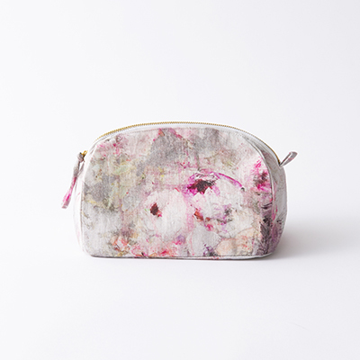 牡丹の花々が艶やかに咲き誇る、リネンキャンバス地のポーチです。リップクリームやブラシなどの小物入れにぴったりのサイズで、バッグインにも重宝します。コットンオーガンジーのスライディングバッグ(32×20cm)をお付けしてお届けします。