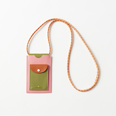 ・スマートフォン用ミニバッグ。 ・本体はマイクロファイバーを使用したレザーライク素材。 ・フロントにフラップ付きポケット。ポケット内部は整理しやすい仕切り付き。 ・バッグ背面にICカードなどが入れられるスリットが3つ。 ・汚れたら濡れたタオルで拭くだけのイージーケア。