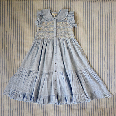 BONJOUR 2024SS KIDS IBIZA DRESS Light Blue organic check voile 6A