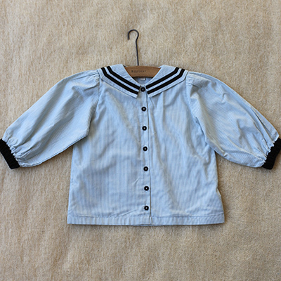 ・ブルーストライプがマリンテイストのデザインとマッチした、キッズのセーラーカラーシャツ。