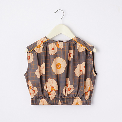 ・格子柄に大きな花のプリントが印象的な、大人の雰囲気が漂うノースリーブトップス。