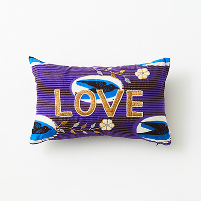 ・フランスのフェアトレードブランド「CSAO(サオ)」のメッセージ入りミニクッション。・アフリカの女性刺繍師によるフランス語の「LOVE」と花の刺繍入り。・中芯入り。・カバーはファスナー付きで取り外しが可能です。*ハンドメイドのため、刺繍の位置などが1点1点異なります。