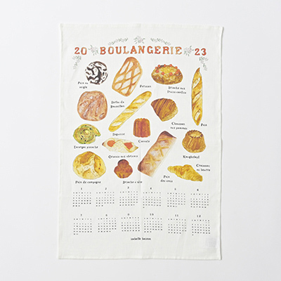 ・2023年のリネン製カレンダークロス。 ・イラストはフランス在住のアーティスト イザベル・ボワノ氏のもの。 ・ふきんとしても使用可能。 ※素材の特性上、色やプリントの出方に差がある場合がございます。天然素材の風合いをご理解の上、ご購入いただけますと幸いです。