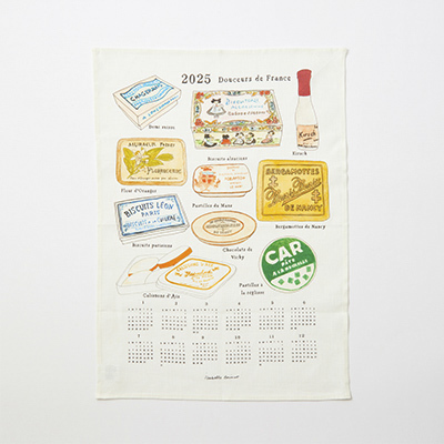 ・毎年即完売となるリネン製カレンダークロス。・おしゃれなお菓子のパッケージをあたたかなタッチで描いたイラストは、フランス在住のアーティスト イザベル・ボワノ氏のもの。・壁に貼ってカレンダーとしてお楽しみいただけるのはもちろん、バスケットのカバーやふきんとしてもお使いいただけます。・プチギフトにもおすすめです。※素材の特性上、色やプリントの出方に差がある場合がございます。天然素材の風合いをご理解の上、ご購入いただけますと幸いです。