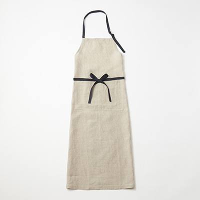 ・インド、ジャイプールの工場で染めた、バイカラーエプロン。・吸水・速乾性に優れたリネン100%。・生地の原材料にはインド産とヨーロッパ産のフラックス(亜麻)から作られた糸をミックスしています。・糸の段階と生地の段階で丁寧に洗いをかけた柔らかな手ざわり。・さっと着け外しができるホルターネックで、ベルトは長さ調整も可能。・フロントに2つに分かれた大きめのポケット付き。