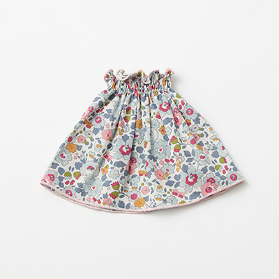ネコのジゼルのお気に入り。リバティファブリックで仕立てた、Winter dress(冬のドレス)という名のエレガントなワンピースです。胸元はゴムシャーリングでピタッとフィットして、後ろにはしっぽ用の穴付き。ビッグサイズのぬいぐるみ用です。