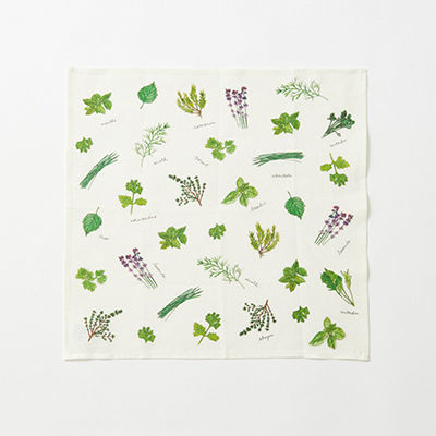 ・NHK Eテレ「パリジェンヌの田舎暮らし」に出演するフランス人アーティスト、イザベル・ボワノさんが描いた、さまざまなハーブのイラストが彩るプリントハンカチ。