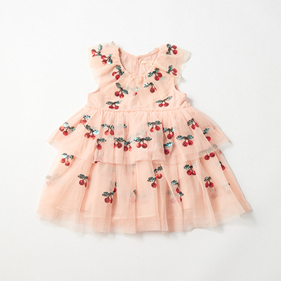 ・ふわふわのチュールをたっぷり重ね、スパンコールのチェリーモチーフをあしらったガーリーなデザイン。