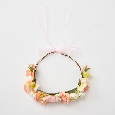 童話に出てくる妖精や女神のような、ロマンチックなヘアアレンジが楽しめる花冠です。ピンク・オレンジベースのやさしい色使いが女の子らしさを引き立て、結婚式やガーデンパーティーにぴったり。リボンで結んでサイズ調整できるので、キッズから大人の女性までお使いいだけます。 ※パーツが取れやすい構造になっています。商品の特徴としてご理解の上、ご購入いただけますと幸いです。