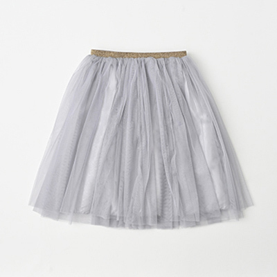 ふわふわのチュールを重ねた、バレリーナのようなチュチュスカートは女の子の憧れ。ウエストはゴールドラメのゴム仕様で、脱ぎ着もらくらくです。シンプルニットとのきれいめコーディネートはもちろん、パーカーなどスポーティーなアイテムを合わせるのもおすすめです。(推奨年齢:6-10歳)