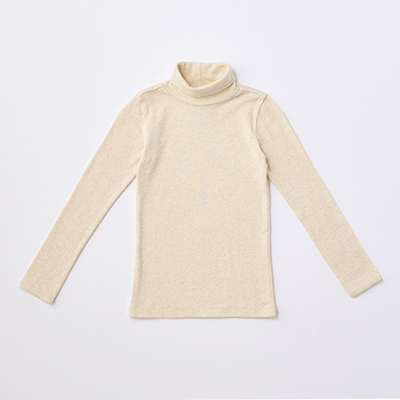 ・体にフィットして暖かなキッズのタートルネックカットソー。・貝殻を思わせる薄いベージュで、さり気ない霜降りがかかったお色です。・GOTS(オーガニックテキスタイル世界基準)認証オーガニックコットン100%。・タイトシルエット。