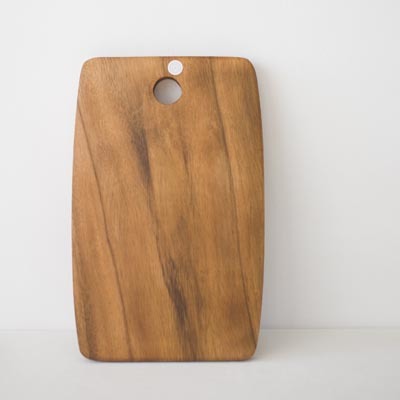 無垢のアカシアの木を使ったカッティングボード。自然な木目がナチュラルな素敵な仕上がり。そのまま食卓に出せるデザインがうれしいですね。
