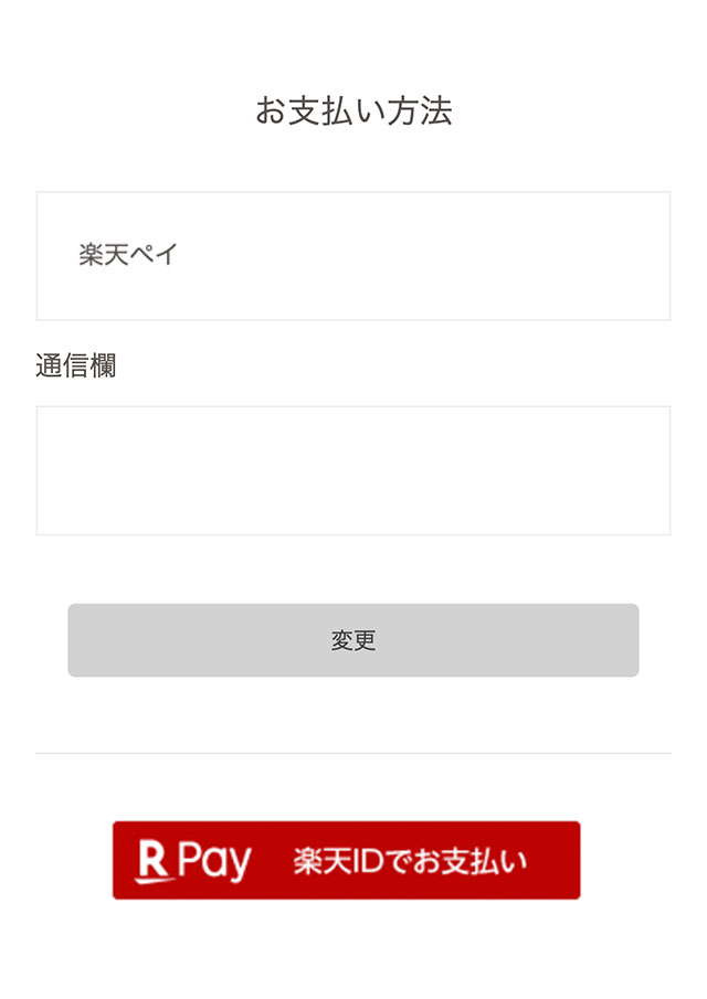 注文確認画面に「楽天IDでお支払い」ボタンが表示されます。「楽天IDでお支払い」ボタンを押下すると、楽天ペイのサイトに遷移し、楽天会員ログイン画面が表示されます。ご注文手続き画面に移動します。