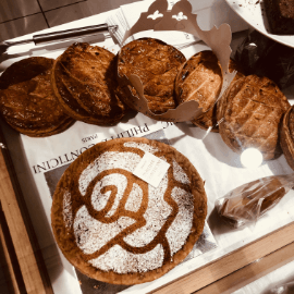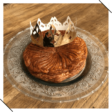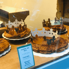 フランスのお正月は日本の三が日のような習慣もなくあっさりとしていて、おせち料理に代わるものもありませんが、大人も子どもも心待ちにしているこの時期だけのお菓子があります。「Gallete des rois ガレット・デ・ロワ(王様のお菓子)」は1月6日の公現祭(エピファニー)のお祝いに食べるケーキで、新年早々から1月いっぱい、街中のパン屋さんやお菓子屋さんに並びます。