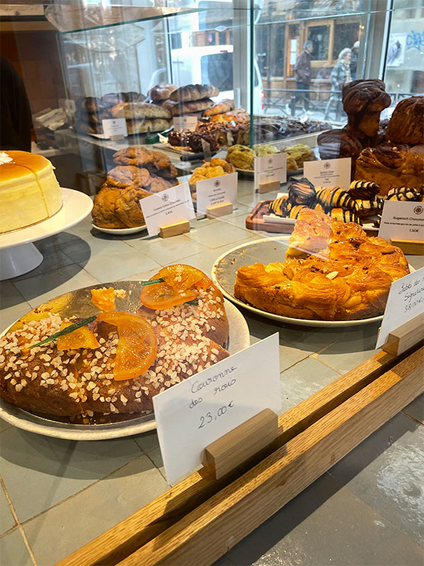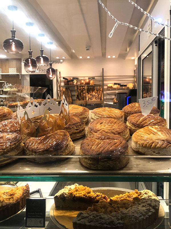 年が明けるとすぐに町中のパン屋さん、お菓子屋さんに冠を乗せたパイが並びます。