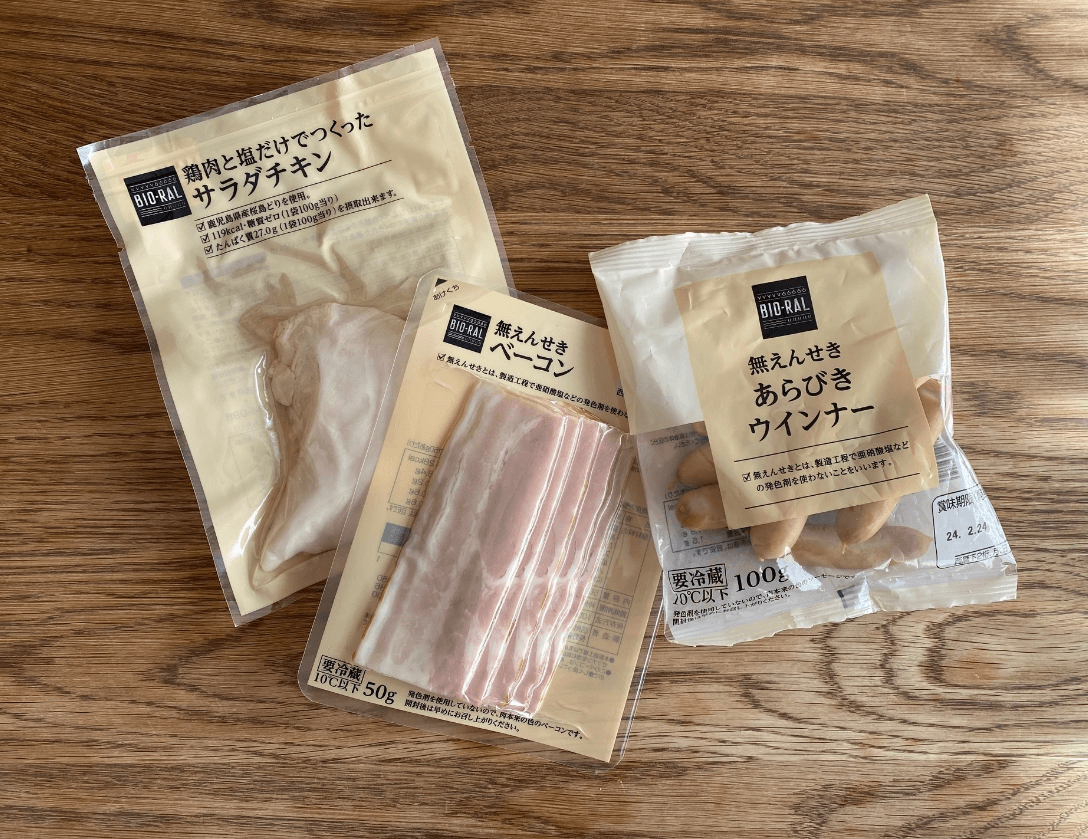 きれいなピンク色のハムやベーコンは亜硝酸ナトリウムなどの発色剤が使われていることがほとんど。もし食べる場合は、1日1〜2本(枚)まで、1分湯通しすることで添加物を減らせます。なるべく無添加や塩漬けにしてつくられた「無塩せき」を選んで。