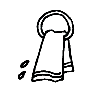 すぐに自分で手を拭けるように、子どもの手が届く高さにかけておくか、エプロンのひもやポケットにはさんでおきましょう。