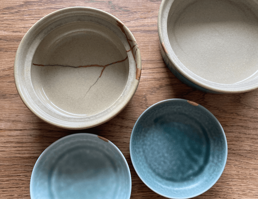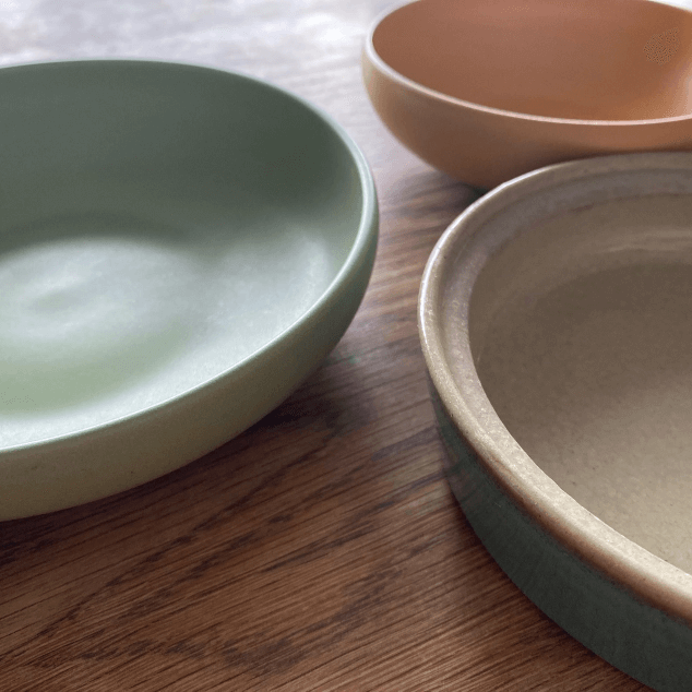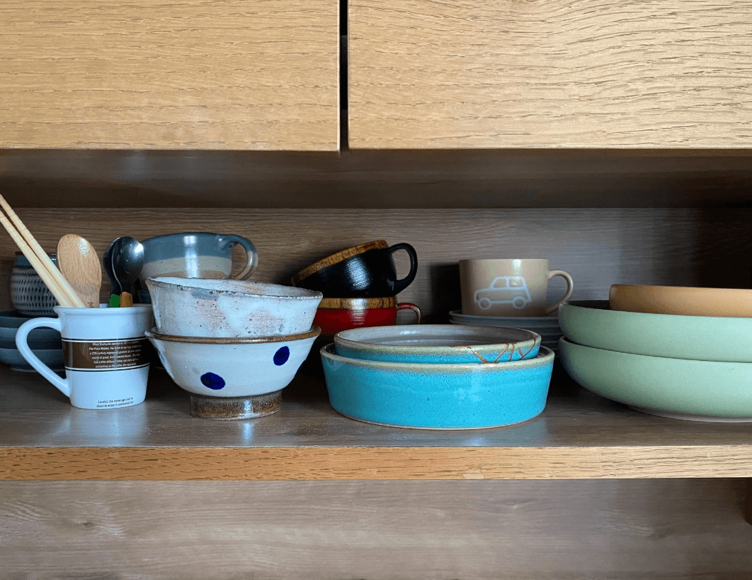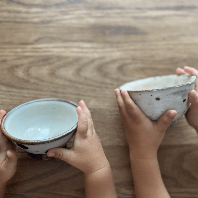 食器は、ある程度の重さがあり安定感のあるものが扱いやすく、私個人としては幼児期から陶器や磁器の茶碗やお皿を使うことをおすすめします。わが家ではおにぎりやパン、おやつなど手で食べるもののときはプラスチック製のプレートも使いますがそれ以外は陶器製の食器を使っています。当然割れてしまう悲しみやケガをする危険はあるのですが(もう何度となくお気に入りの器を欠いたり割っていますが泣)、程よい重さが子どもにとって扱いやすいのはもちろん、プラスチックにはない土や石の温もりを感じたり、ものを大切にする気持ちを育むことができます。割ってしまうのも学びのひとつ、ちょっとした欠けは自分で金継ぎしたり、プロにお直しをお願いしたり「割れても、大切に使おうね!」ということを子どもたちに伝えています。