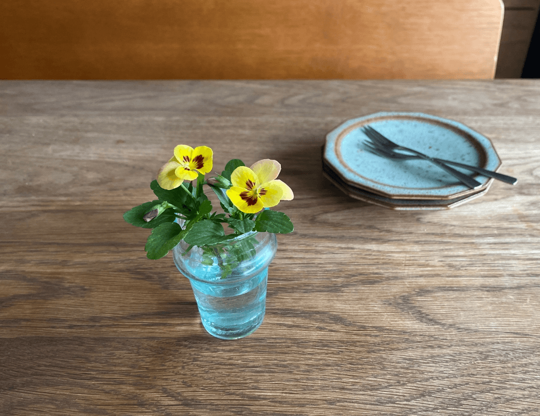 また、食卓に季節の花を飾るのもおすすめ。お花屋さんでわざわざ買わなくても庭に咲いている花などを小さな花瓶に活けたり、使っていないグラスに野花を活けるだけでもOK。食卓を美しく彩るのはもちろん、花の名前を知ったり、水替えをして植物のお世話をする活動にもつながります。