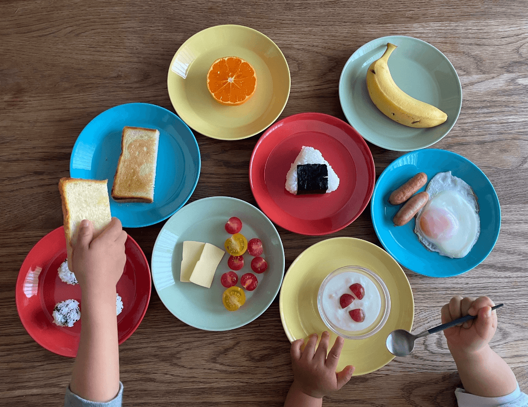 とはいえ、寝起きが悪く朝ごはんを食べるモードになっていなかったり、着替えや出かける準備に追われて食べる時間が少なかったり…日々大変な思いをしているパパやママは多いのではないでしょうか? わが子たちは出発の5分前までパジャマ姿でおにぎりをほおばっている…なんてことがよくあります(苦笑)。子どもには、スムーズに朝ごはんを食べてもらい、大人は素早く出かける準備を整え、家事を片付ける…毎日慌ただしくはありますが、「子どもに機嫌よく朝ごはんを食べてもらう」これがすべてだと思っています。