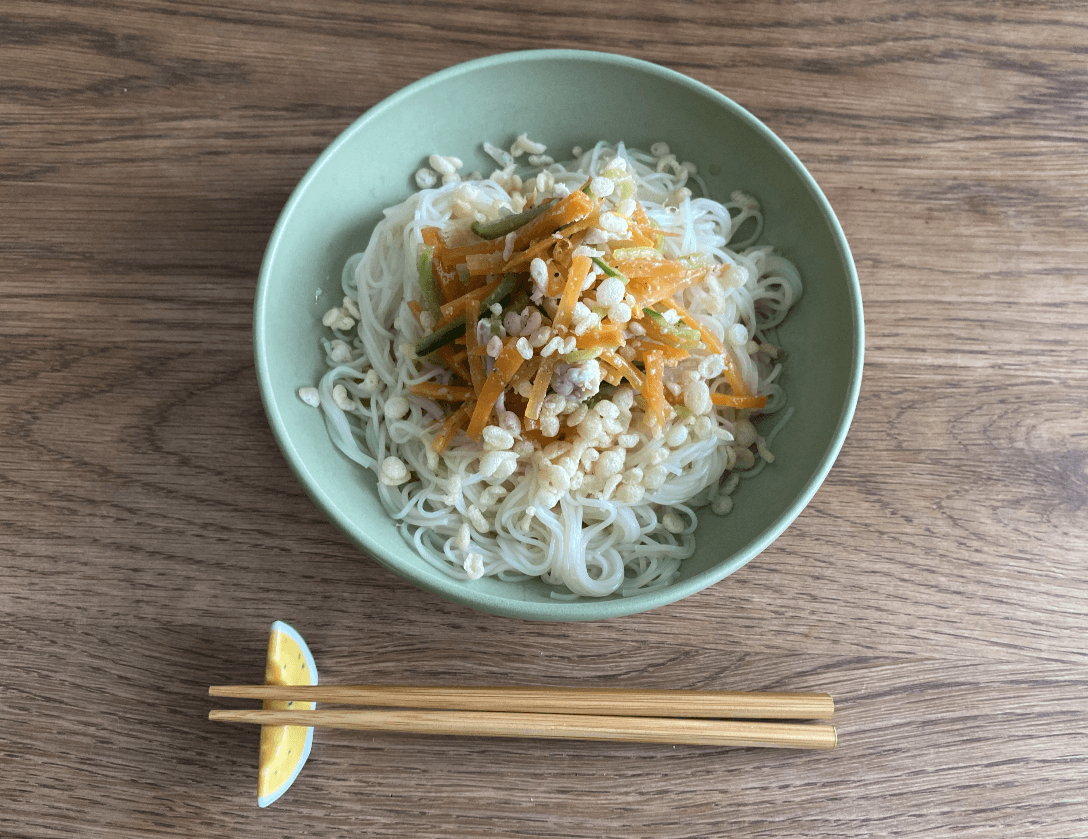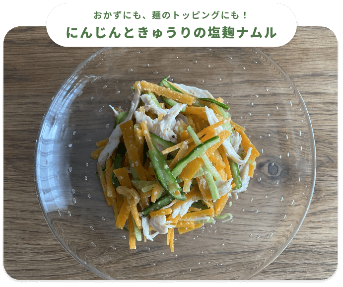 にんじん、きゅうり以外にも、もやし、小松菜、しめじやえのきだけ、シーチキンなどお子さまの好みに合わせた食材を組み合わせてつくるのもおすすめ。そうめんに添えたり、冷やしラーメンの具にしたり、アレンジも楽しんで。
