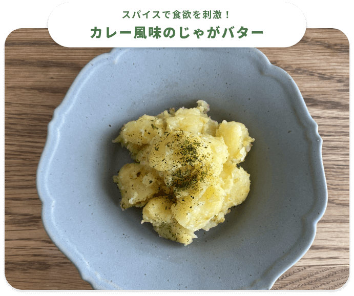 3. 熱いうちにバターとカレー粉を加えて全体を和え、お好みで青のりをまぶす。
