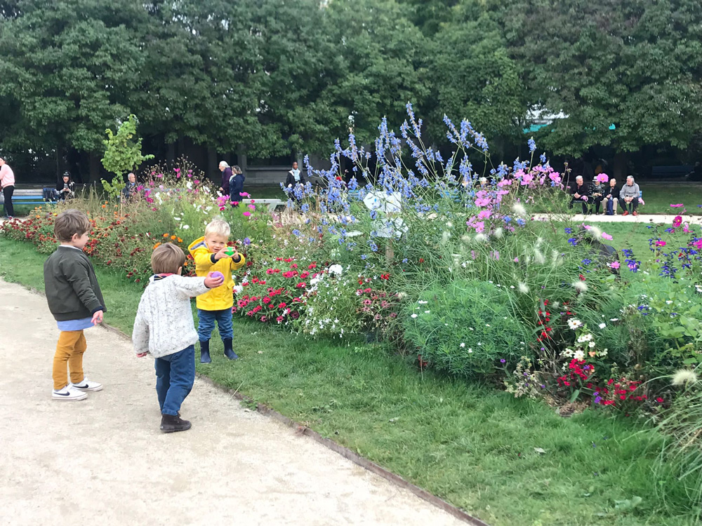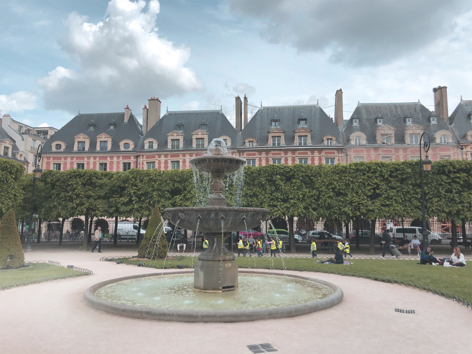 4区ヴォージュ広場。15h30 黄色いベストを着た小さな遠足隊が元気に歩き回っていました。