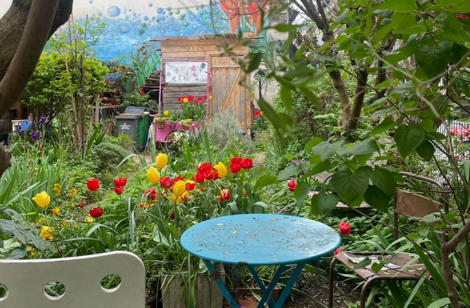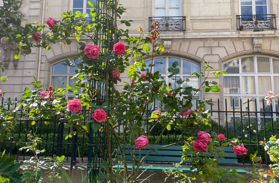 マレ地区のちょっと隠れた小さな花園。5月はバラが満開になります。