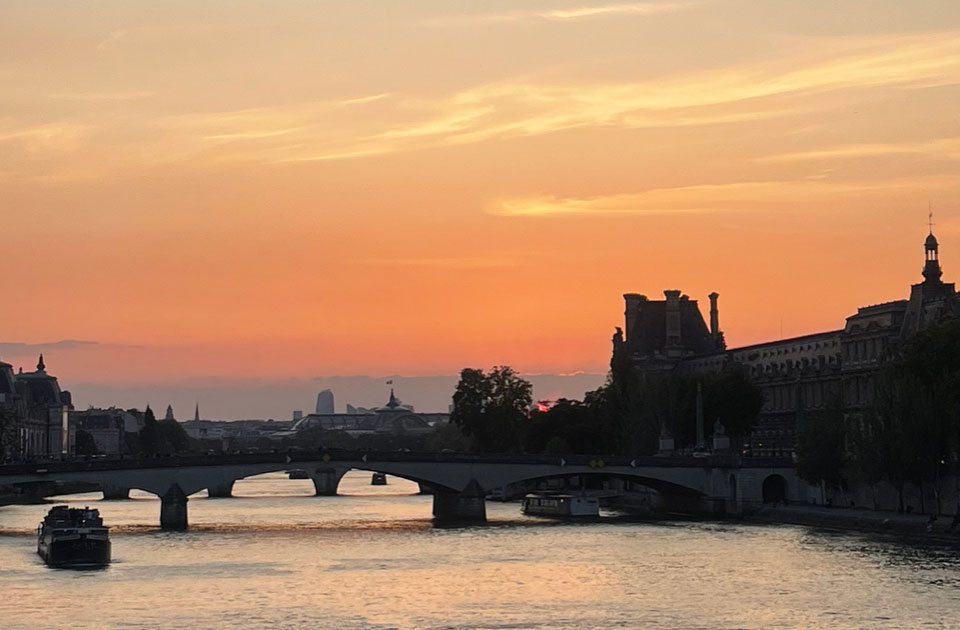 Pont des Artsの夕日。日の入りは21時すぎ。