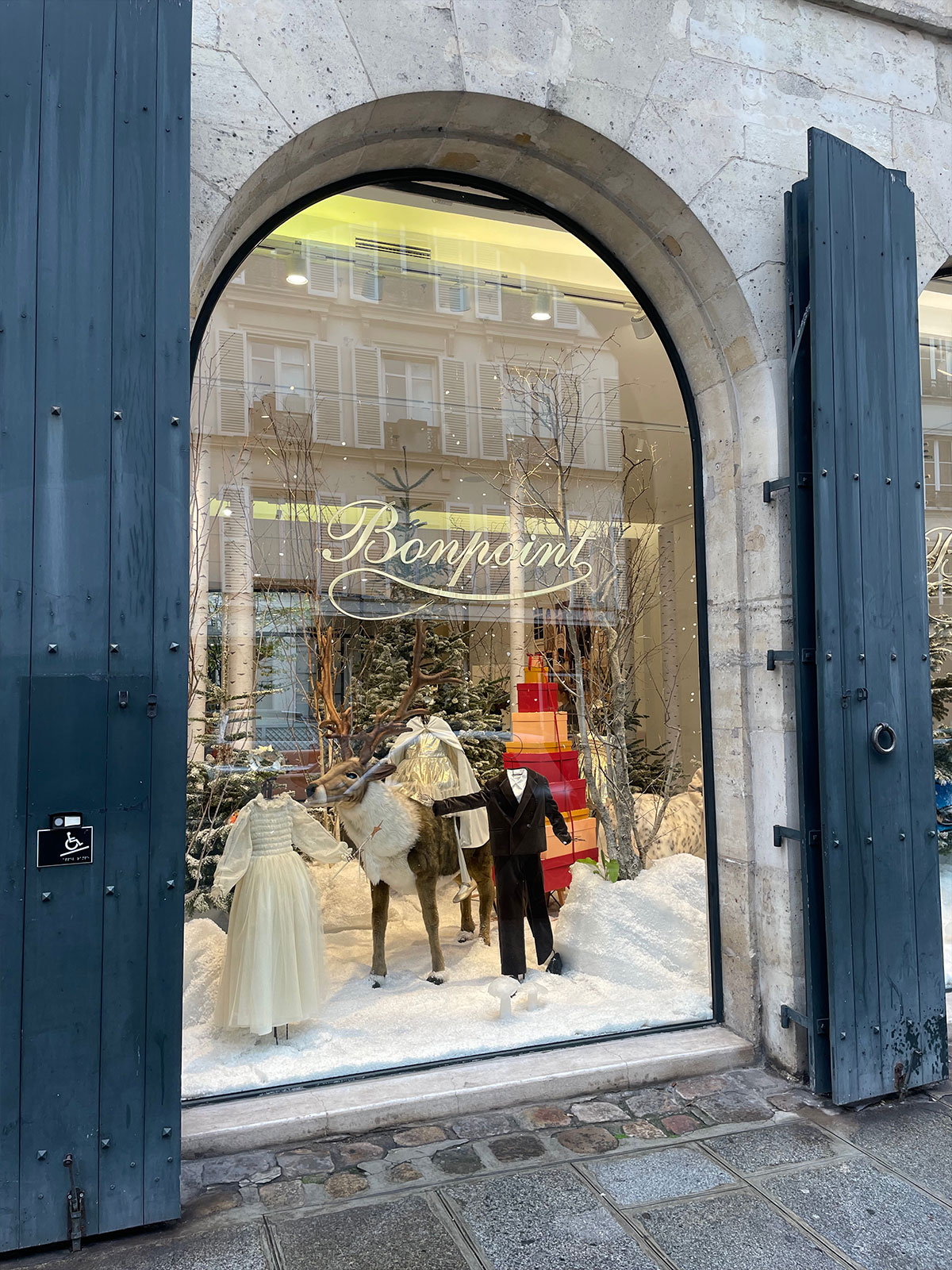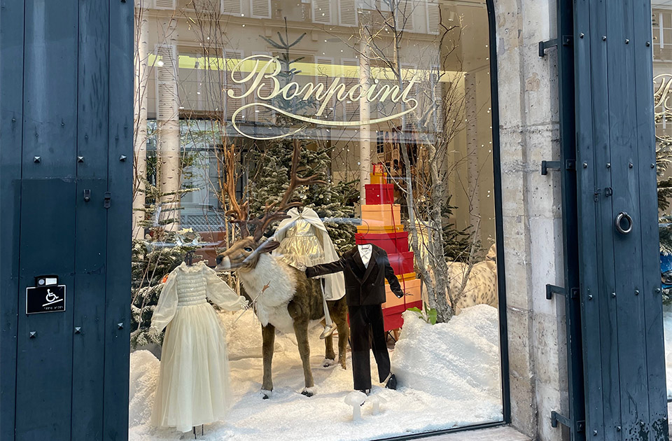 左岸のBONPOINTのブティック。今年は雪景色とトナカイの幻想的なウインドウです。