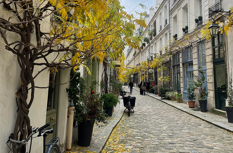 バスチーユ広場の直ぐ裏にある小道。住居や小さな事務所やアトリエが並ぶこのかわいい小さな通りは夜になると道の両端の門が閉まって完全な私道になります。