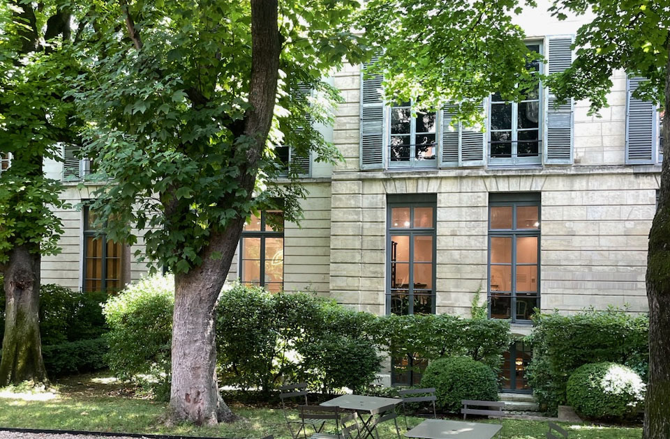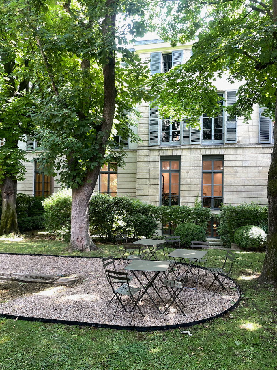 ちょうど入荷が始まったBONPOINTサンジェルマンのお店の裏庭。7月の緑が美しいこの時期にオーダーしたものが今届き始めました!